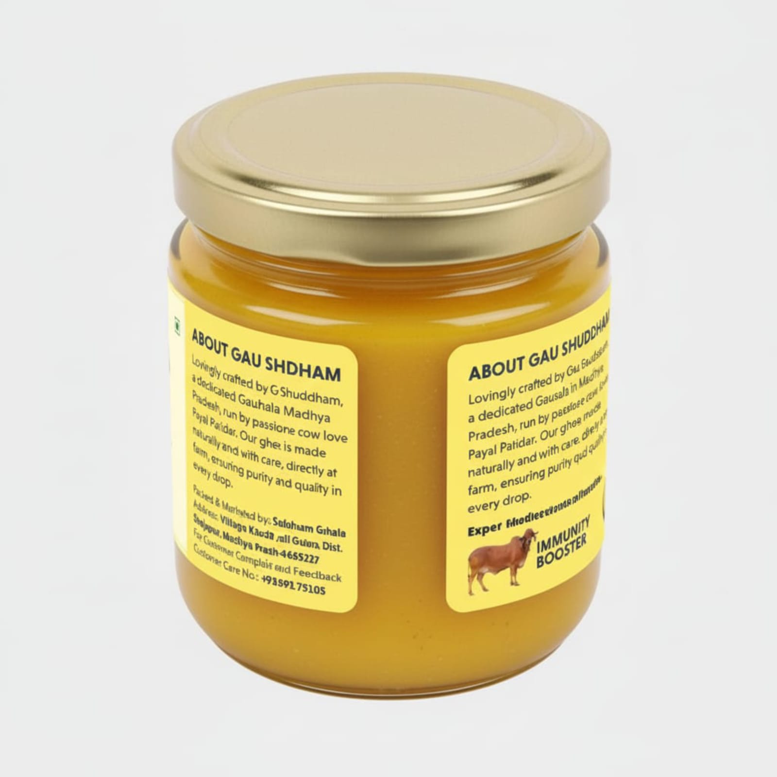 Straining & Storing: Once the liquid turns golden and clear, it is strained to remove residue, resulting in pure, aromatic A2 Ghee.